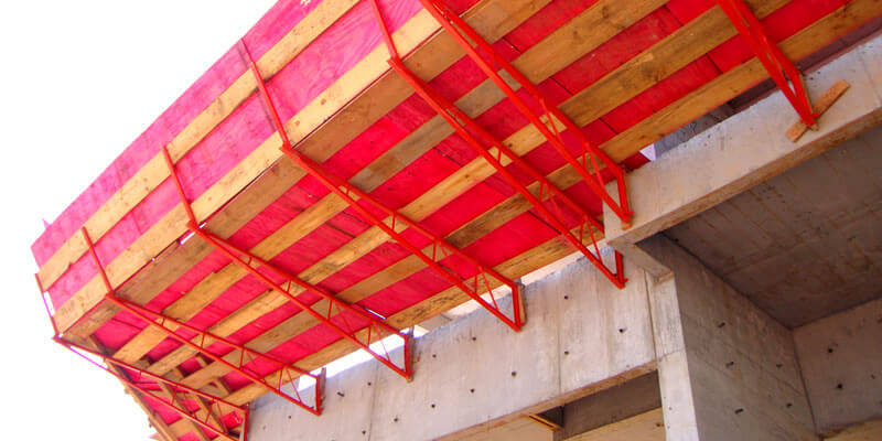 La estructura de la bandeja protectora está compuesta por soportes metálicos que fijan el contrachapado al edificio, siendo retirados posteriormente al finalizar los servicios. El número de bandejas instaladas en cada construcción varía de acuerdo con la altura del edificio, aumentando su cantidad conforme aumenta la altura.
